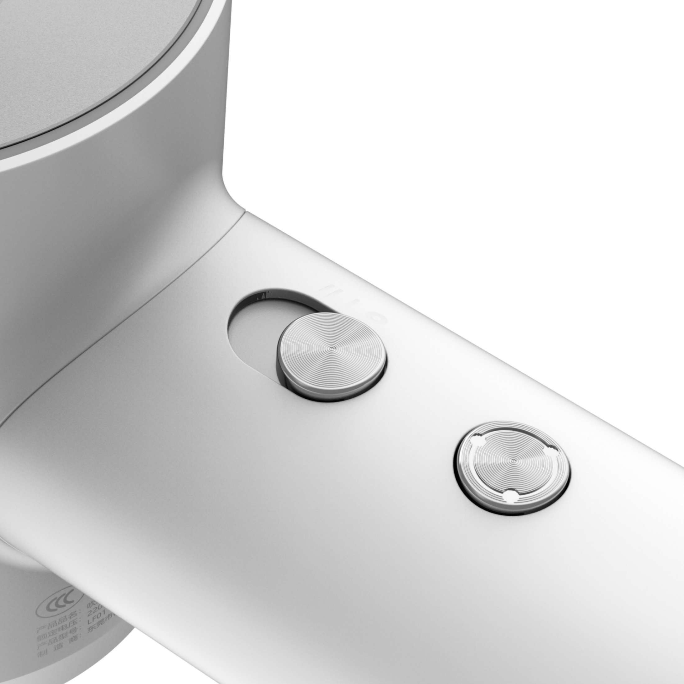 An elegant fingerprint design of buttons that Instantly switch among 4 temperature modes and 2 speed levels to control airflow to style your hair